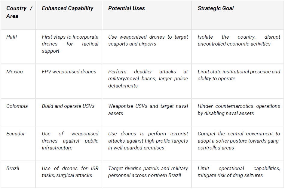 Unmanned technologies are increasingly shaping modern warfare, with most international observers putting considerable attention on modern conflict zones. In Latin America, criminal groups continue to adopt unmanned technologies in increasingly sophisticated ways, despite financial constraints, that challenge state authority and regional stability.