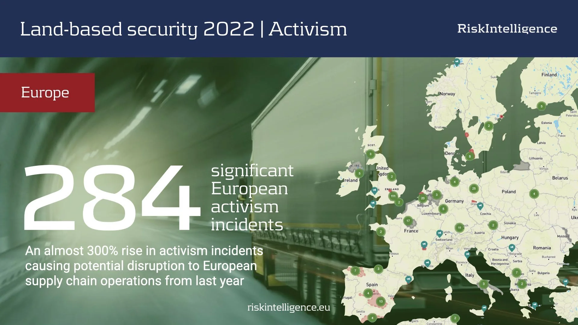 Significant increase in activism/protests incidents with potential disruption to the supply chain in 2022. (Image: Risk Intelligence)