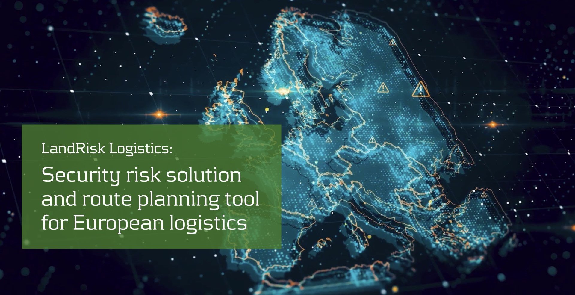 LandRisk Logistics is a security risk planning product that helps manage road freight logistics by allowing users to plan and monitor multiple routes and find secure parking spots.