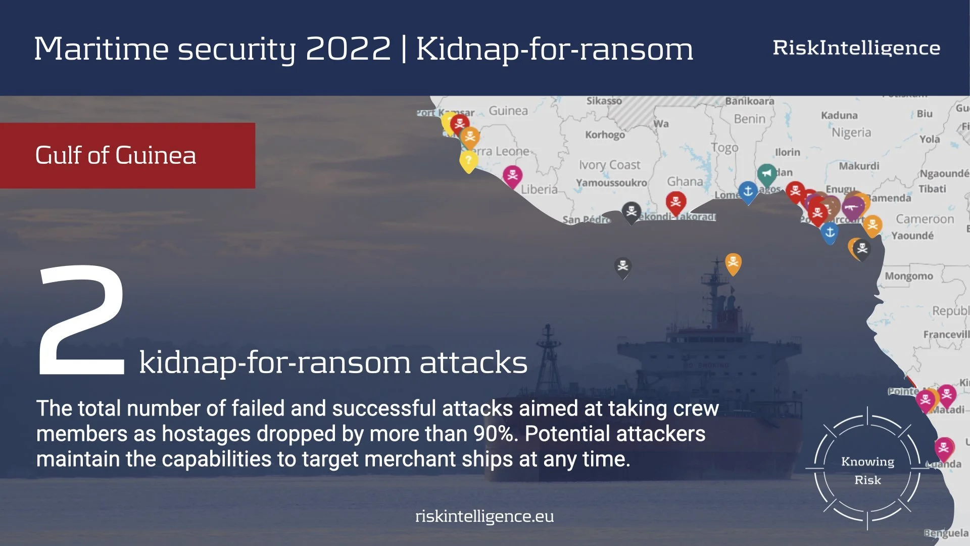 90% decrease in kidnap-for-ransom attacks in the Gulf of Guinea in 2022. (Image: Risk Intelligence)