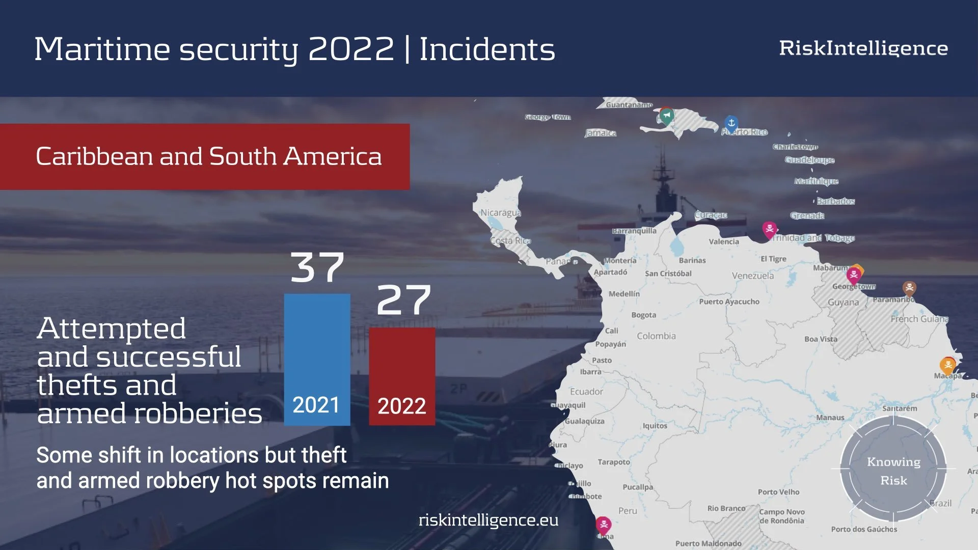 The Caribbean and South America continue to be hotspots for theft and armed robbery